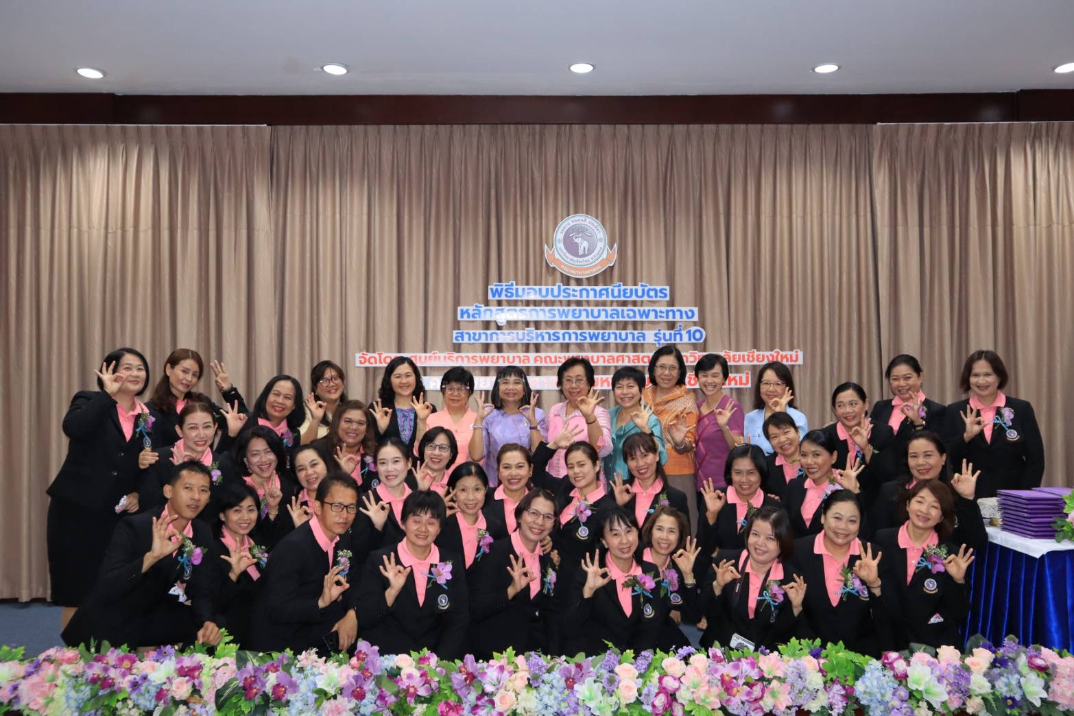เนื่องในโอกาสที่สำเร็จการศึกษาและเข้ารับประกาศนียบัตร หลักสูตรการพยาบาลเฉพาะทาง สาขาการบริหารการพยาบาล รุ่นที่ 10 จากศูนย์บริการการพยาบาล คณะพยาบาลศาสตร์ มหาวิทยาลัยเชียงใหม่ เมื่อวันที่ 29 พฤษภาคม 2563