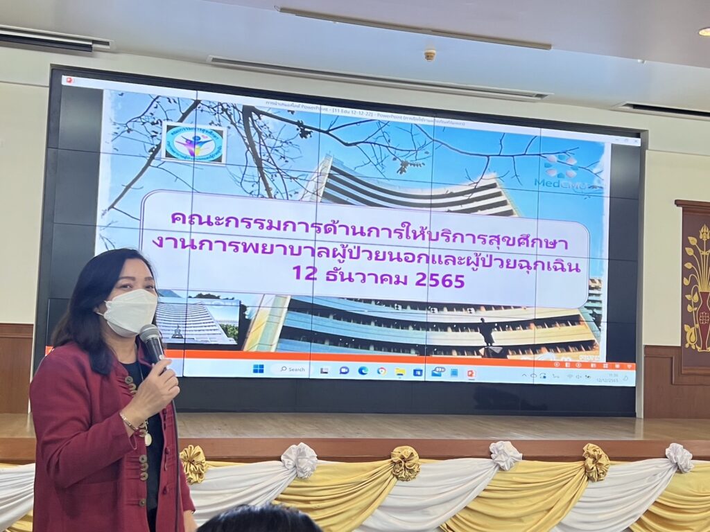 คุณกมรวรรณ หงส์ลดารมภ์ หัวหน้างานการพยาบาลผู้ป่วยนอกและผู้ป่วยฉุกเฉิน คณะผู้ตรวจการ หัวหน้าหน่วย หัวหน้าห้อง พร้อมคณะกรรมการของงานการพยาบาลผู้ป่วยนอกและผู้ป่วยฉุกเฉิน จัดให้มีการสัมมนาการนำเสนอแผนการดำเนินงานประจำปี 2565 ของงานการพยาบาลผู้ป่วยนอกและผู้ป่วยฉุกเฉิน