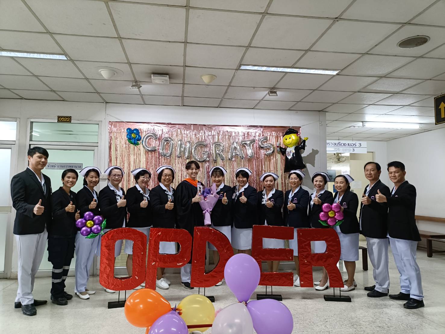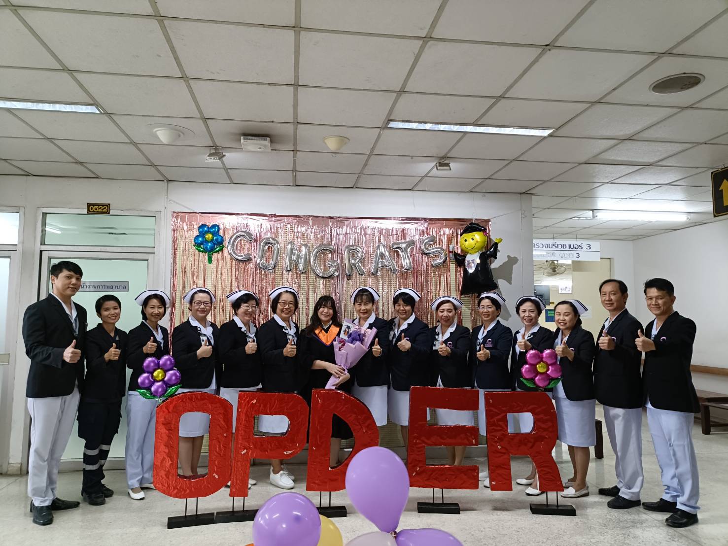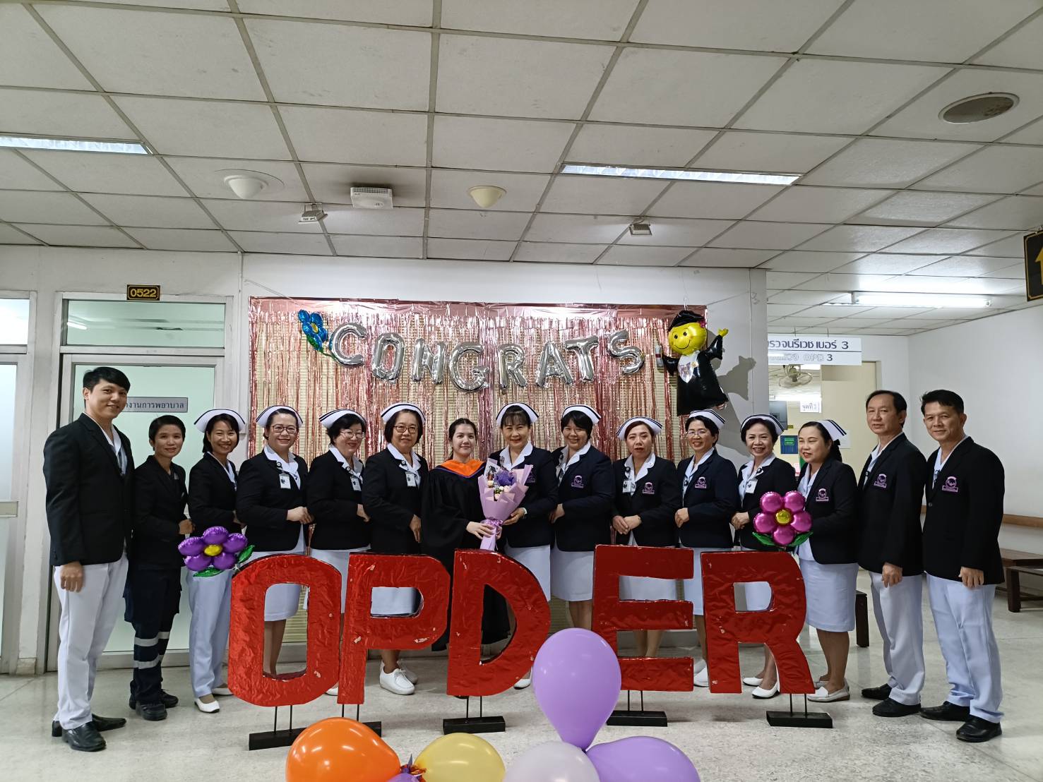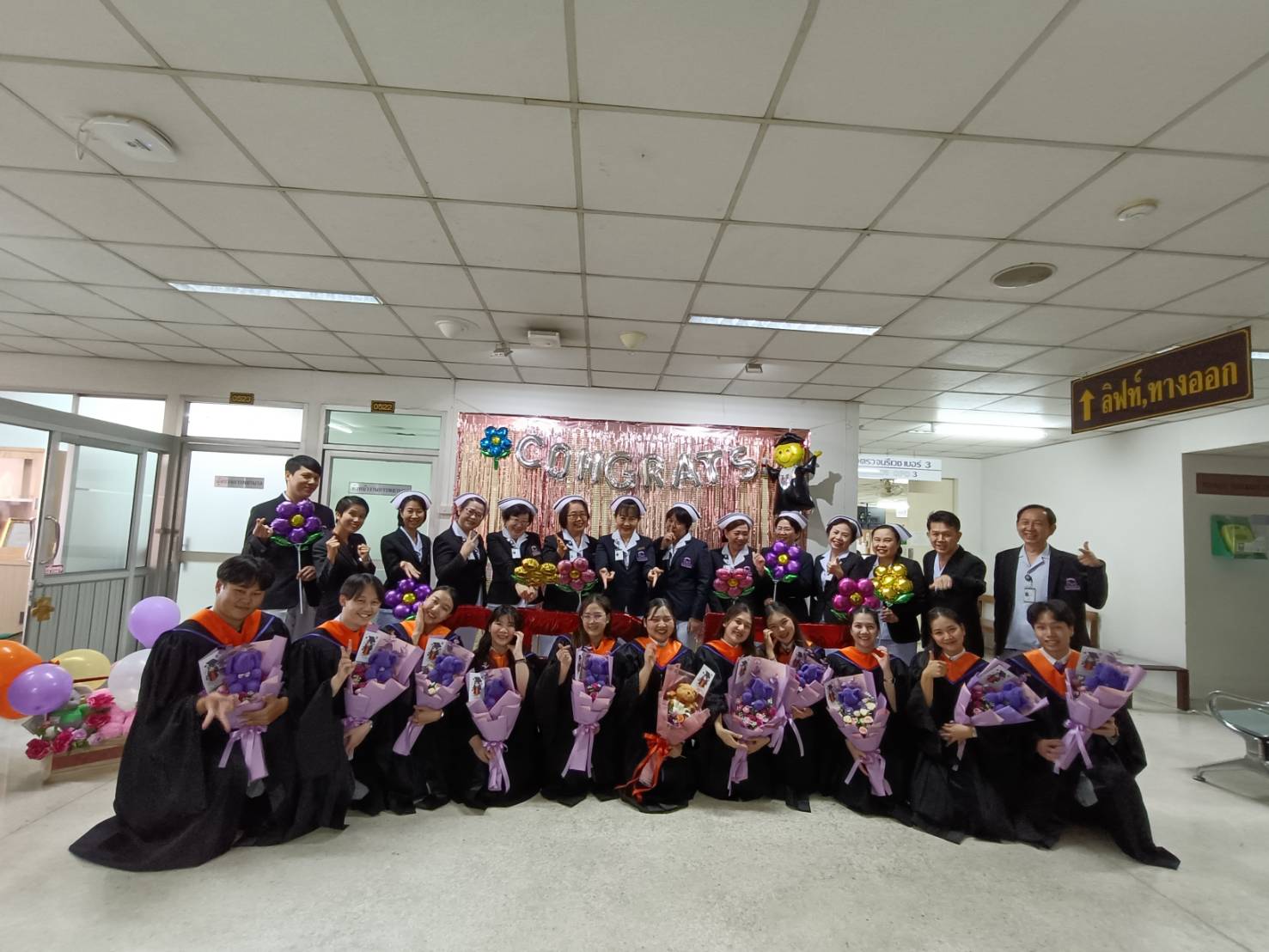 คุณวรรณลัคน์ ศรีวรรณตัน หัวหน้างานการพยาบาลผู้ป่วยนอกและผู้ป่วยฉุกเฉิน พร้อมด้วยคณะผู้ตรวจการ หัวหน้าหน่วย มอบช่อดอกไม้แสดงความยินดีกับบัณฑิตและมหาบัณฑิตมหาวิทยาลัยเชียงใหม่ รุ่นที่ 58 ของงานฯ เนื่องในโอกาสที่สำเร็จการศึกษา มีรายนามดังต่อไปนี้