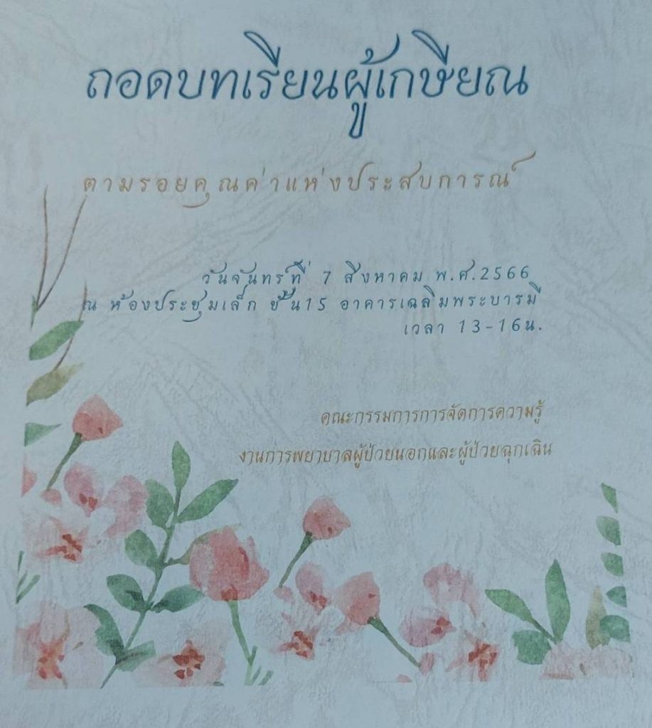 คณะกรรมการจัดการความรู้ทางการพยาบาลจัดงาน ถอดบทเรียนผู้เกษียณ ตามรอยคุณค่าแห่งประสบการณ์