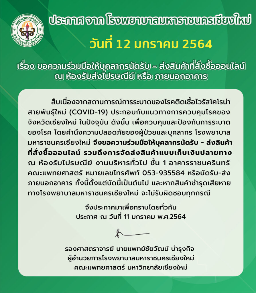 ขอความร่วมมือบุคลากรในการนัดรับสินค้าออนไลน์