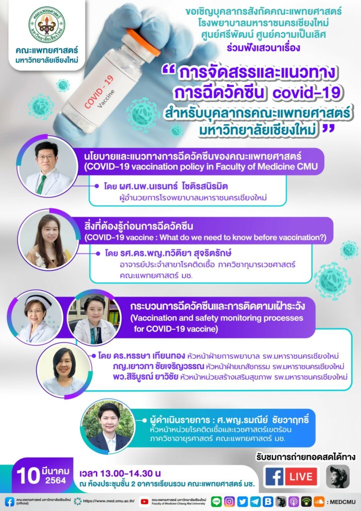 ขอเชิญร่วมฟังเสวนา การจัดสรรและแนวทางการฉีดวัคซีน COVID-19 สำหรับบุคลากรคณะแพทยศาสตร์