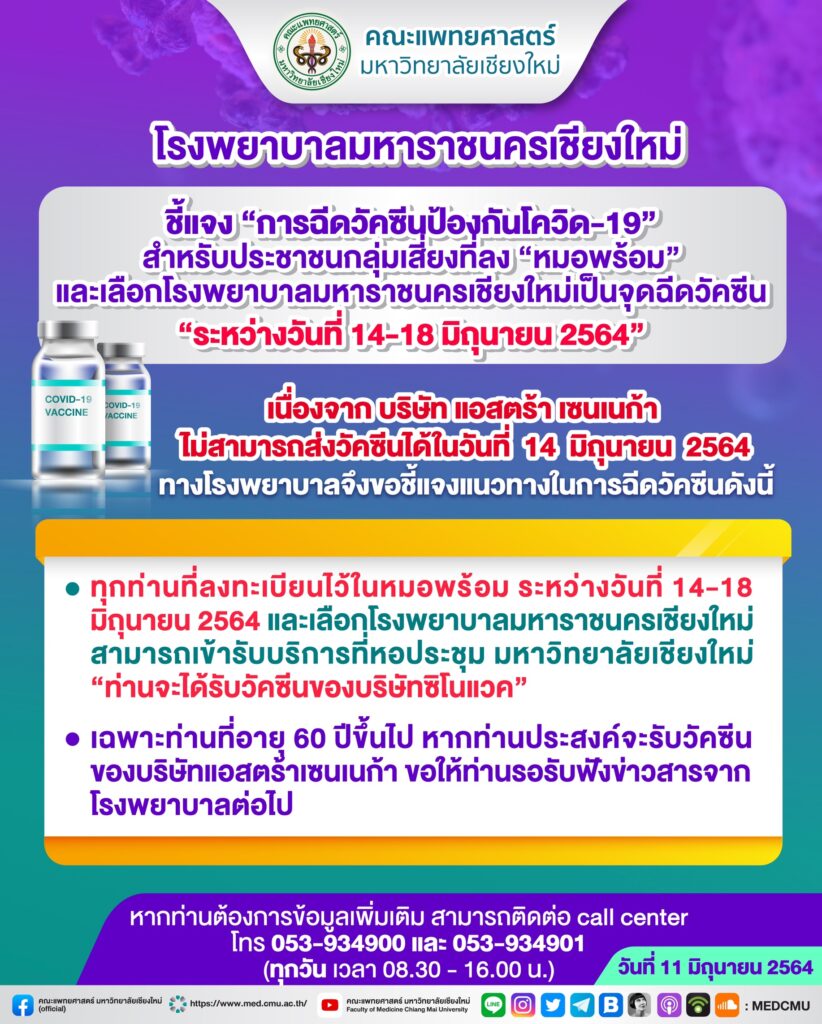 รพ.มหาราช ชี้แจงเรื่องวัคซีนป้องกันโควิด-19 แอสตร้าเซนเนก้า