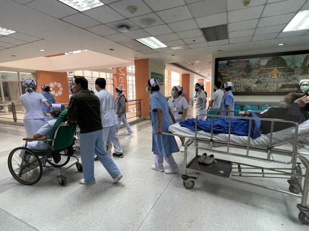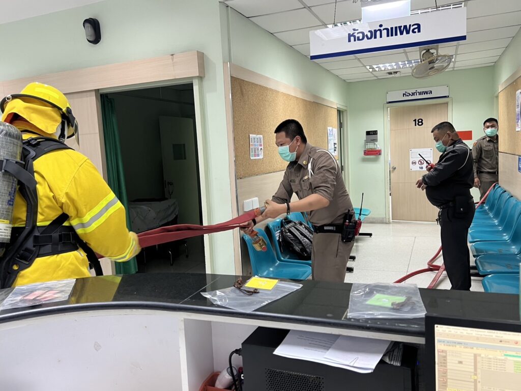 สถานการณ์ซ้อมแผนเผชิญเหตุอัคคีภัยและเคลื่อนย้ายผู้ป่วยครั้งนี้จัดขึ้น ณ ห้องตรวจศัลยกรรมทั่วไปห้อง101 ชั้น 2 อาคารเฉลิมพระบารมี วันที่ 23 ธันวาคม 2565