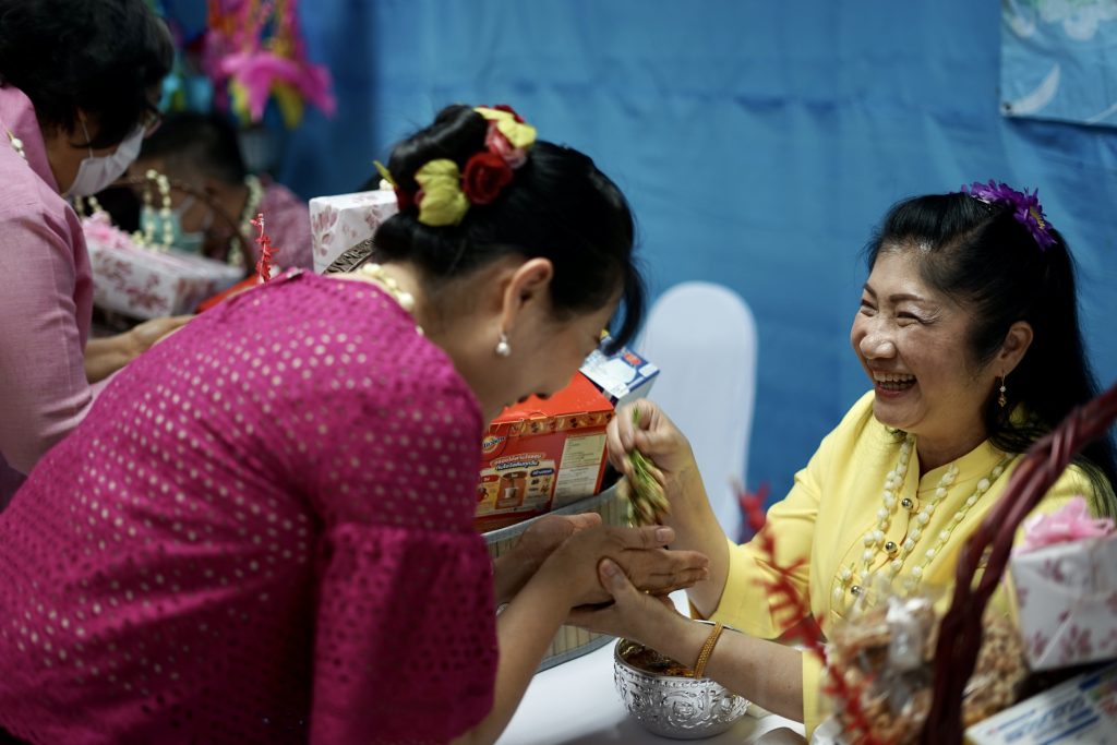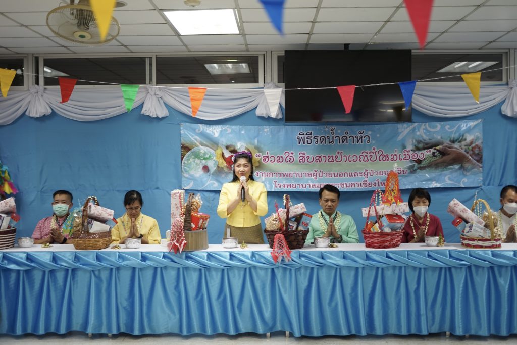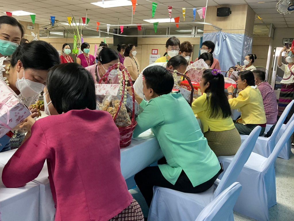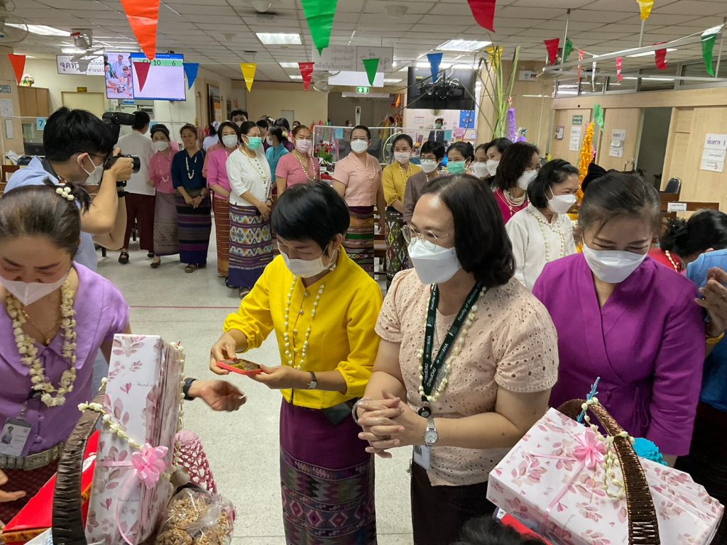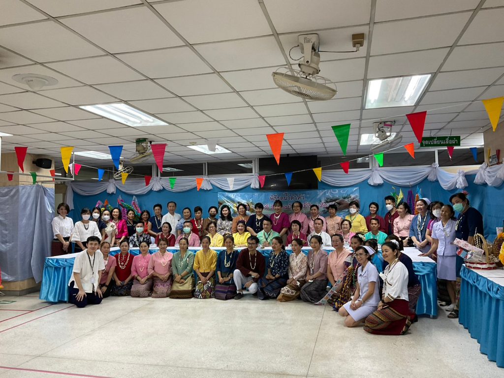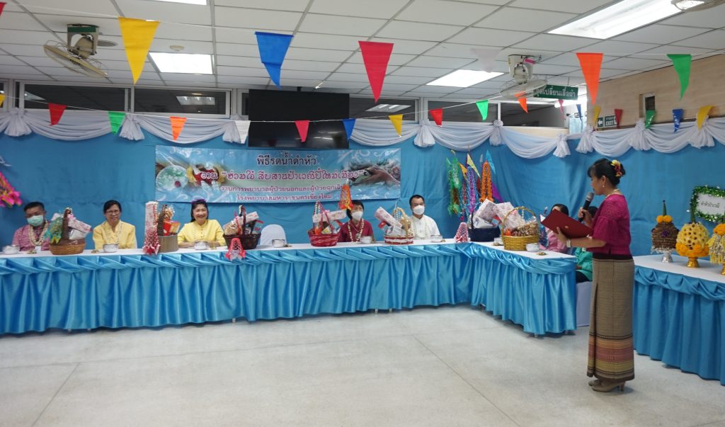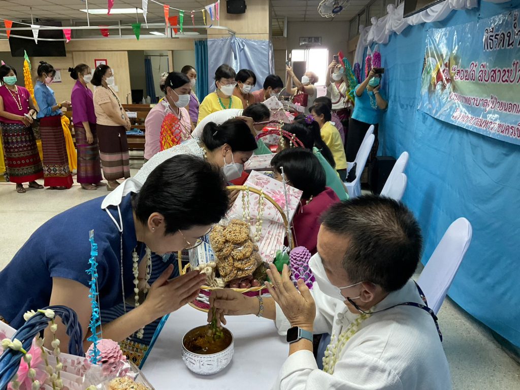 งานการพยาบาลผู้ป่วยนอกและผู้ป่วยฉุกเฉิน นำโดยคุณวรรณลัคน์ ศรีวรรณตันพร้อมด้วยคณะผู้ตรวจการ หัวหน้าหน่วย หัวหน้าห้องและเจ้าหน้าที่ของงานการพยาบาลผู้ป่วยนอกและผู้ป่วยฉุกเฉินร่วมจัดงาน ” ดำหัว ป๋าเวณี ปีใหม่เมือง 2566 ” เพื่อเป็นการ สูมาคารวะ แก่ หัวหน้างาน และเจ้าหน้าที่อาวุโสของงานฯ ตามฮีตฮอย ป๋าเวณี ตี๋สืบต่อกันมา