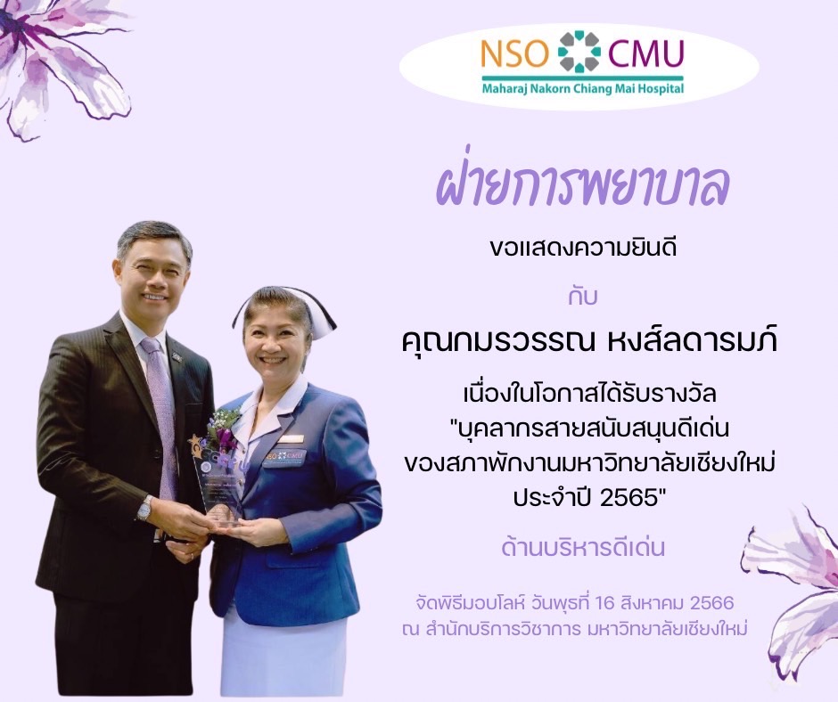 ” สายสนับสนุนดีเด่นของสภาพนักงาน มหาวิทยาลัยเชียงใหม่ ประจำปี 2565 ” ด้านการบริหารดีเด่น