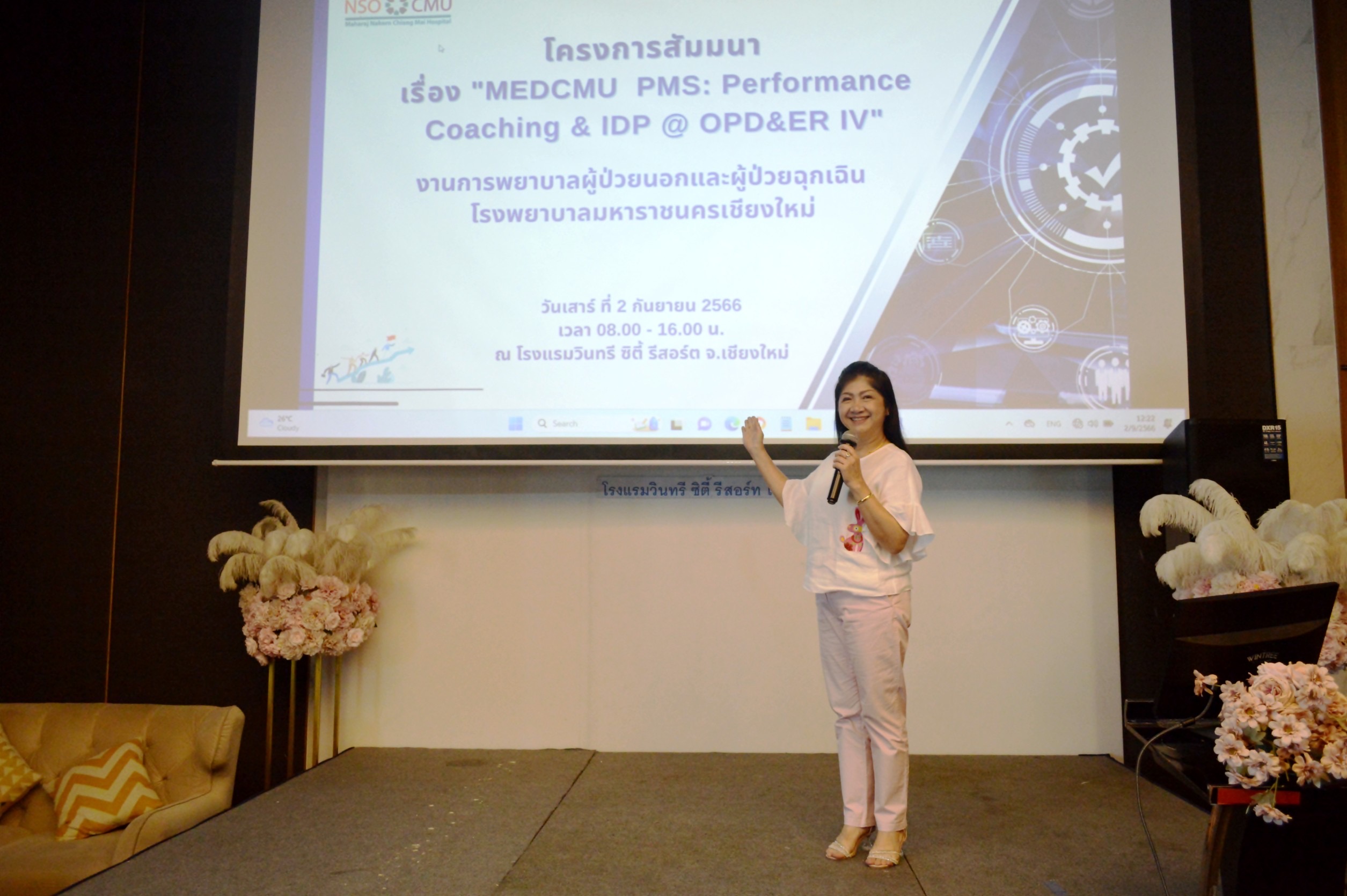 คุณกมรวรรณ หงส์ลดารมภ์ หัวหน้างานการพยาบาลผู้ป่วยนอกและผู้ป่วยฉุกเฉิน ให้เกียรติเป็นประธาน เปิดการอบรม ” MEDCMU PMS: Performance Coaching & IDP at OPD-ER IV ” แก่คณะผู้ตรวจการ หัวหน้าหน่วย หัวหน้าห้อง รวมทั้งคณะกรรมการของงานการพยาบาลผู้ป่วยนอกและผู้ป่วยฉุกเฉิน นอกจากนี้ในงานยังนำเสนอผลลัพธ์ของกรรมการ งานการพยาบาลผู้ป่วยนอกและผู้ป่วยฉุกเฉินด้วย