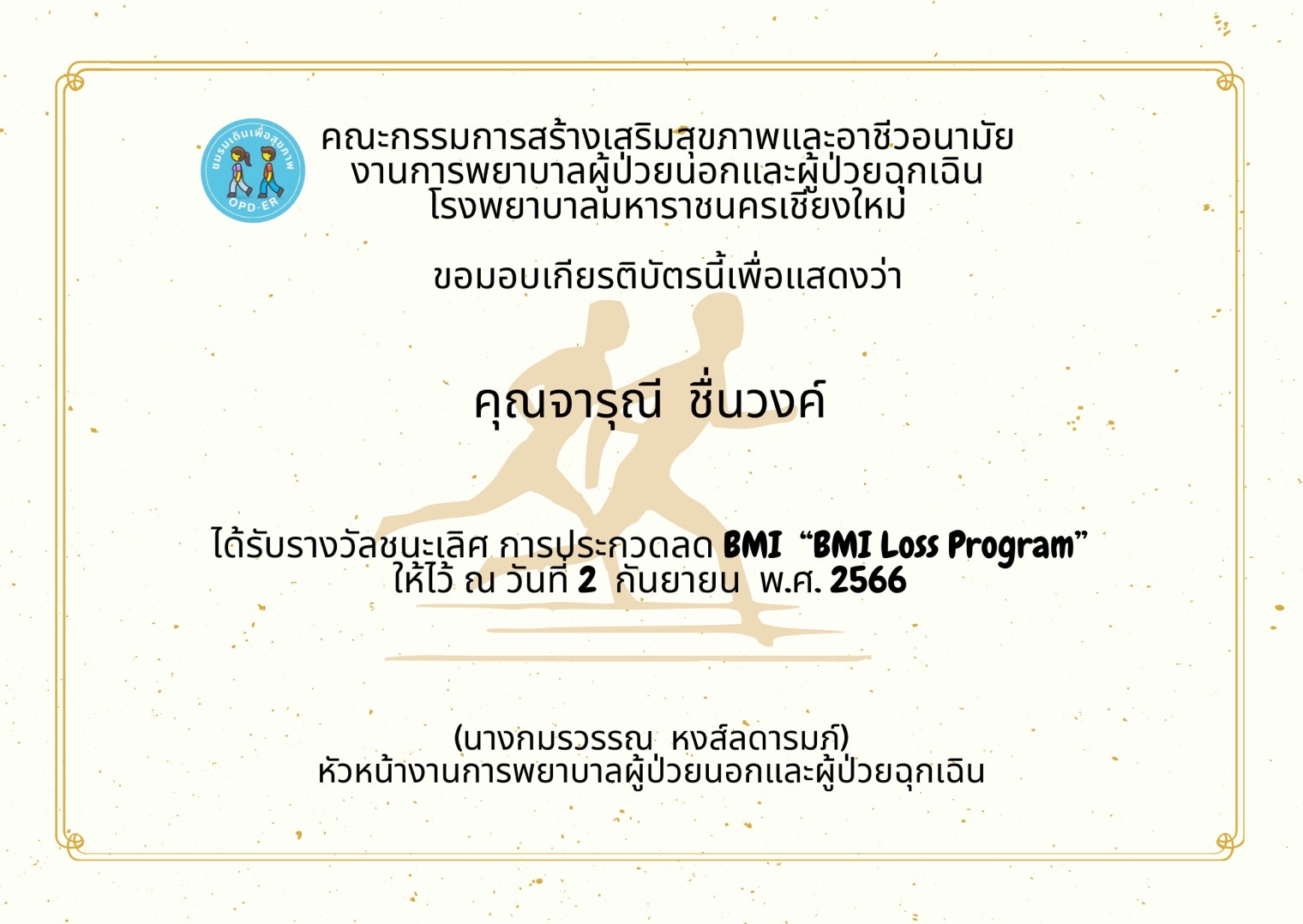 โครงการที่2 BMI Loss Program ระยะเวลาประกวด ตั้งแต่ วันที่ 1 พฤษภาคม – 31 สิงหาคม 2566 ผู้ชนะได้แก่