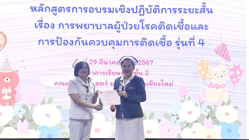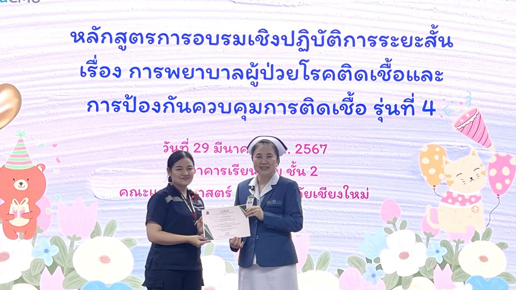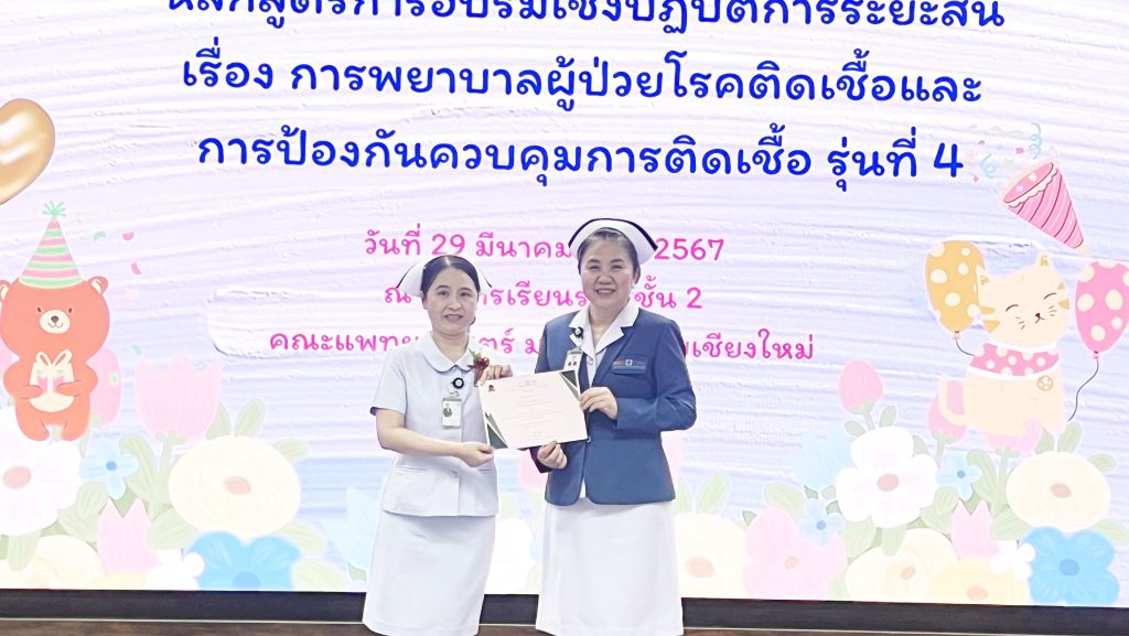 โดยมีคุณสุคนทา คุณาพันธ์ รองหัวหน้าฝ่ายการพยาบาล ด้านบริหารและบริการ ให้เกียรติกล่าวปิดการฝึกอบรม และมอบเกียรติบัตร ให้แก่ผู้เข้ารับการอบรม และมีคุณเสาวลักษณ์ ฟูปินวงศ์ หัวหน้าหน่วยควบคุมและป้องกันการติดเชื้อในโรงพยาบาล กล่าวรายงาน