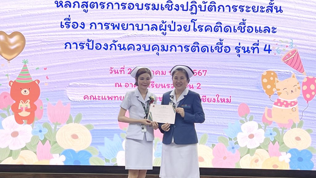 งานการพยาบาลผู้ป่วยนอกและผู้ป่วยฉุกเฉิน ขอแสดงความยินดีกับเจ้าหน้าที่พยาบาลของงานฯ ที่สำเร็จหลักสูตรการพยาบาลผู้ป่วยโรคติดเชื้อและการป้องกันควบคุมการติดเชื้อ รุ่นที่4 ได้แก่