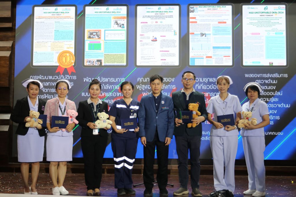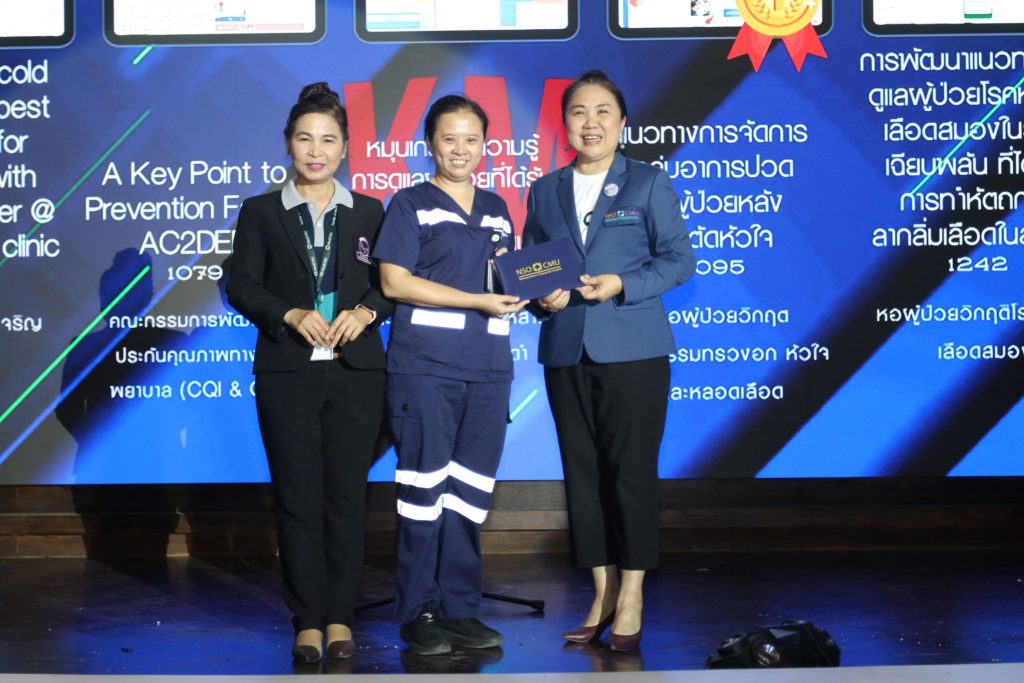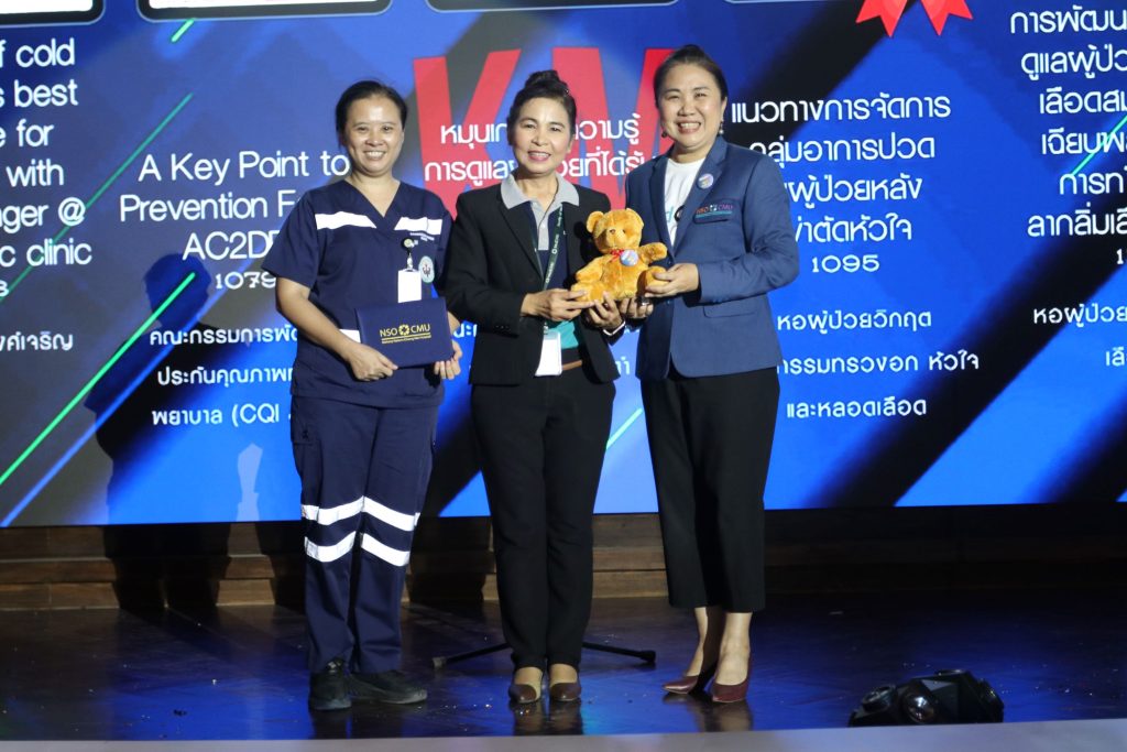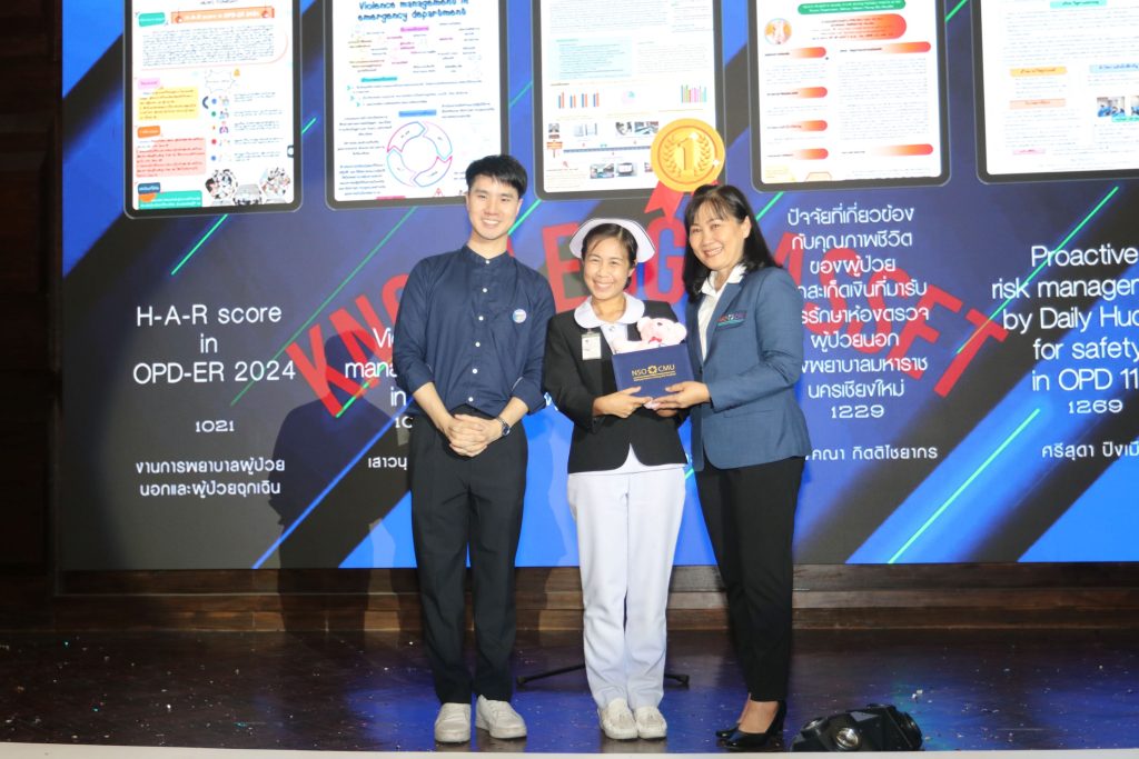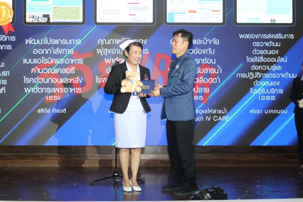 - พว.นันทกา คำแก้ว หน่วยตรวจที่ 1 จากประเภท วิจัย/R2R เรื่อง คุณภาพชีวิตของผู้สูงอายุหลังการผ่าตัดเปลี่ยนข้อเข่าเทียม โรงพยาบาลมหาราชนครเชียงใหม่
