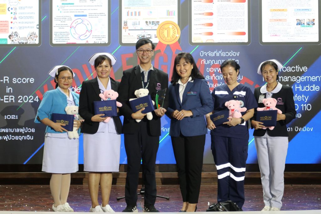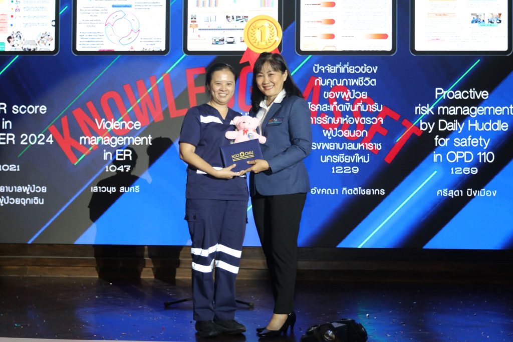 - พว.เสาวนุช สมศรี,พว.สุชิน ติ่งหมาย และพว.อรรธางค์ วรรณภีร์ หน่วยตรวจฉุกเฉิน จากประเภท Knowledge Asset เรื่อง Violence management in ER