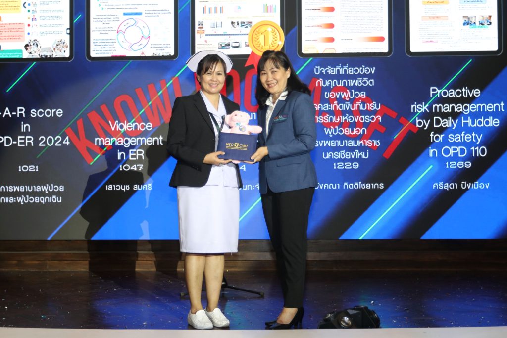 - พว.ศรีสุดา ปิงเมือง ห้องตรวจ 110 หน่วยเคมีบำบัด จากประเภท Knowledge Asset เรื่อง Proactive risk management by Daily Huddle for safety in OPD 110
