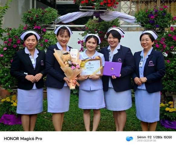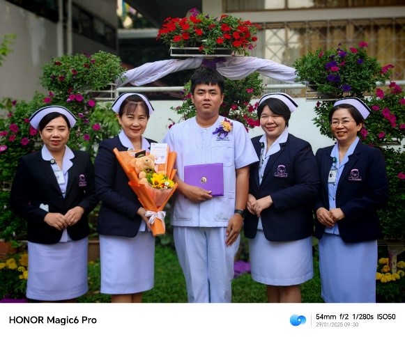 คุณวรรณลัคน์ ศรีวรรณตัน หัวหน้างานการพยาบาลผู้ป่วยนอกและผู้ป่วยฉุกเฉิน นำทีมบริหารงานการพยาบาลผู้ป่วยนอกและผู้ป่วยฉุกเฉิน ร่วมแสดงความยินดีกับ ผู้ช่วยพยาบาล งานการพยาบาลผู้ป่วยนอกและผู้ป่วยฉุกเฉิน ในพิธีมอบประกาศนียบัตรผู้สำเร็จการศึกษาหลักสูตรประกาศนียบัตรผู้ช่วยพยาบาล คณะพยาบาลศาสตร์ มหาวิทยาลัยเชียงใหม่ รุ่นที่ 50 ประจำปีการศึกษา 2566  ในวันที่ 29 มกราคม 2568 ณ  คณะพยาบาลศาสตร์  มหาวิทยาลัยเชียงใหม่