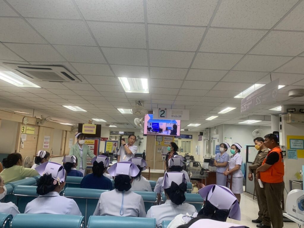 ในการจัดกิจกรรมการซ้อมแผนระงับอัคคีภัยและอพยพเคลื่อนย้ายผู้ประสบภัย ประจำปี 2568 ในงานการพยาบาลผู้ป่วยนอกและผู้ป่วยฉุกเฉิน เพื่อให้บุคลากรมีทักษะในการระงับอัคคีภัยและอพยพเคลื่อนย้ายผู้ประสบภัยได้ถูกต้องและทันท่วงที