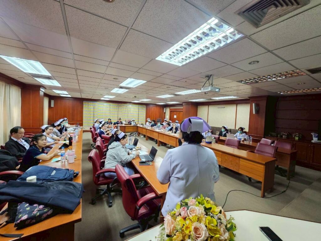คุณวรรณลัคน์ ศรีวรรณตัน หัวหน้างานการพยาบาลผู้ป่วยนอกและผู้ป่วยฉุกเฉิน ให้เกียรติเป็นประธานกล่าวเปิดการอบรม
